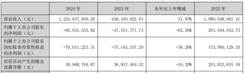 2023年、2024年,公司实现归属于上市公司股东的净利润分别为-6093.16万元、-3755.18万元。