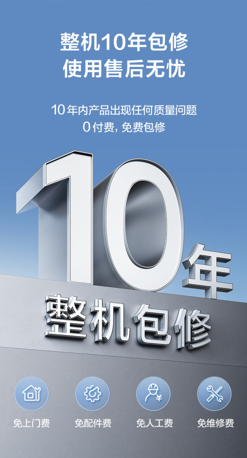 在安装维护方面,三易设计让用户的安装维护更加便捷。外置水泵易维护,风叶电机(免拆电控)易拆装,出风格栅无螺钉,滤网易清洗。此外,整机提供10年包修服务,使用售后无忧,10年内外机产品出现任何质量问题0付费,免费包修,包括免上门费、免配件费、免人工费、免维修费,让用户购买和使用都更加放心。