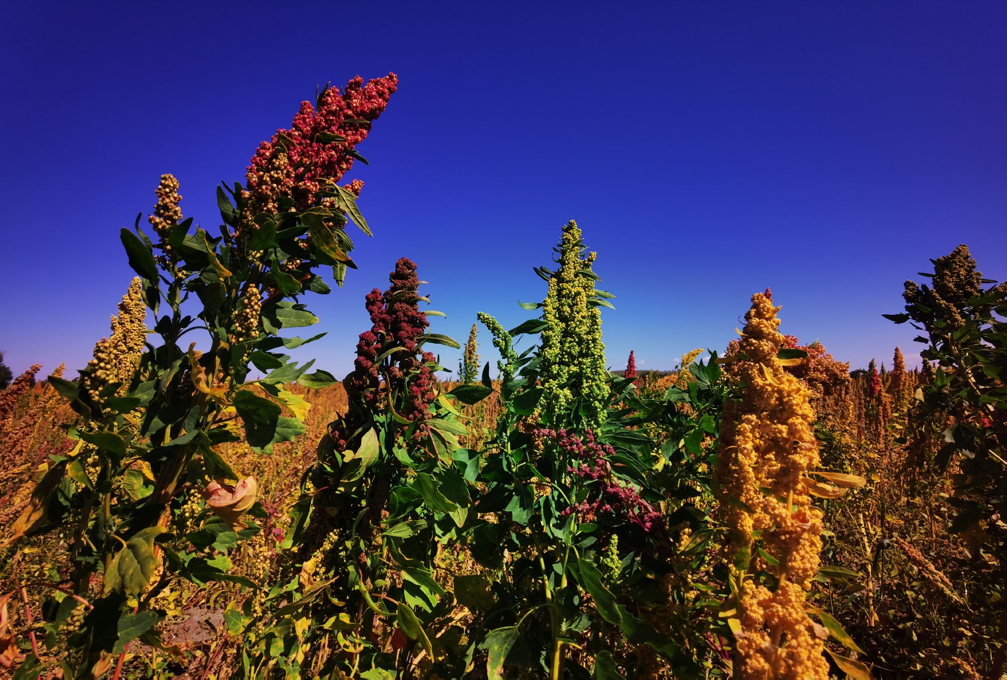 金秋时节,沽源县藜麦种植基地迎来丰收。五彩斑斓的藜麦穗随风摇曳,颗粒饱满,收割机隆隆作业,田间地头一派繁忙景象。