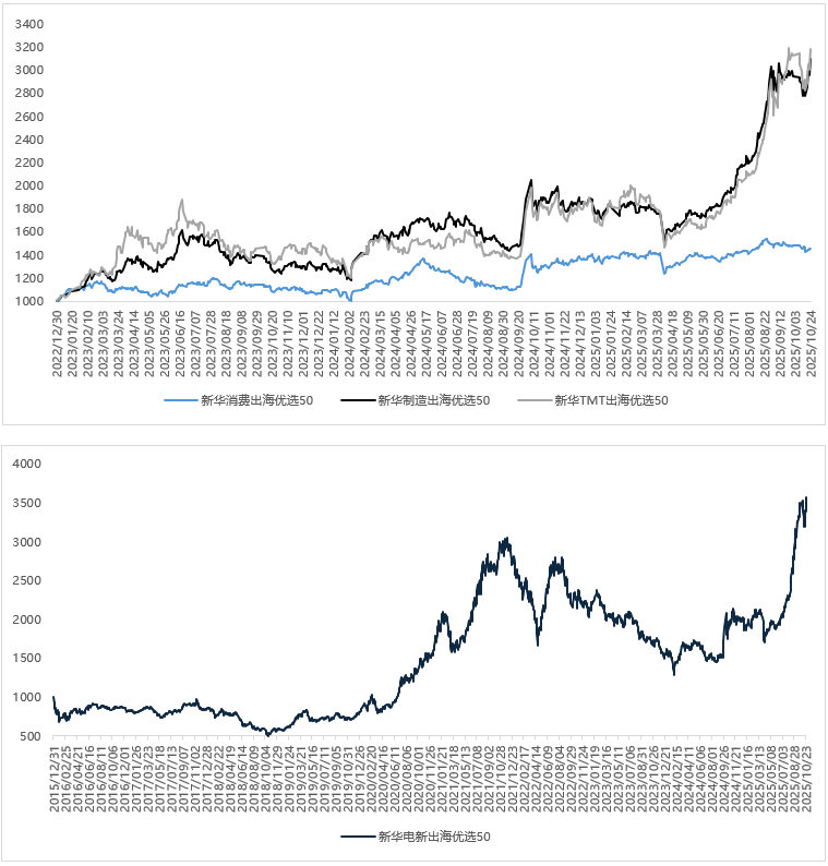 本周,新华出海系列指数全数上扬,三条指数涨幅超10%,制造出海、电新出海指数再创历史新高。周内,《风能北京宣言2.0》设定翻倍装机目标,刺激储能与逆变器需求;叠加全球多家厂商上调DRAM/NAND价格,HBM因AI算力供不应求,产业链涨价预期强烈。科技股成为资金主线,光模块、存储芯片、新能源设备板块获主力资金集中流入。部分指数成份股表现亮眼,中际旭创本周涨超30%;大洋电机、香农芯创涨超20%;新易盛、立讯精密、沪电股份、阳光电源等个股涨超10%。