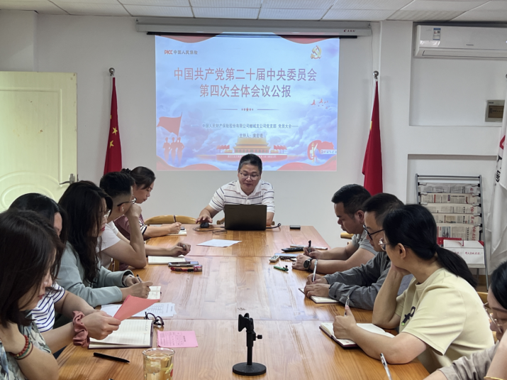 擘画新蓝图,开启新征程。10月24日,人保财险鲤城支公司党支部组织全体党员开展专题学习会,深入学习《中国共产党第二十届中央委员会第四次全体会议公报》精神。