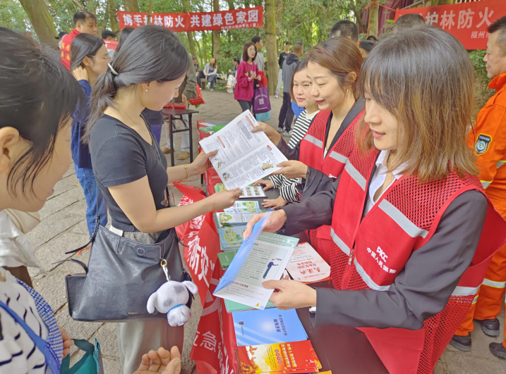 为提升全民森林防火意识,减少森林火灾发生,积极营造全民减灾防控浓厚氛围,10月23日,人保财险福州五四北营销服务部联合晋安区应急管理局、区自然资源和规划局、晋安公安分局、鼓山镇森林防灭火指挥部、福州市鼓岭旅游度假区管理委员会开展“携手护林防火 提升防灾减灾能力”集中宣传活动。