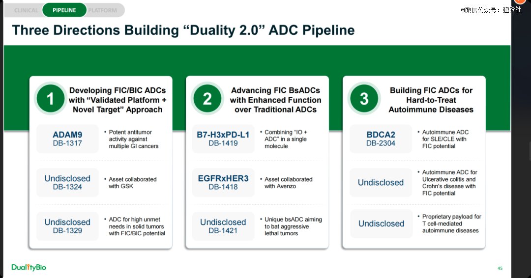 映恩打造2.0管线大概是这三个方向:一是找差异化的靶点,二是做双抗ADC,三是做难治自免疾病的ADC。