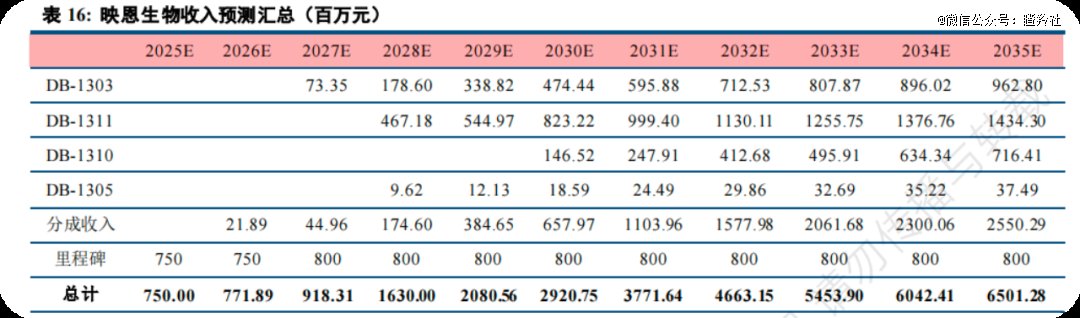 此外,券商研报方面对映恩的BD授权费用预期给的非常不错,根据中信建投关于映恩生物的研报显示,未来从2027年到2035年,给的年BD里程碑收入都为8亿元人民币。