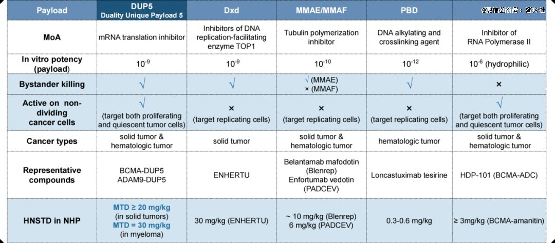 从后面的表格去看,DUP5的差异化在于对非分裂状态的癌细胞也有效果,这是众多主流ADC载荷例如dxd,MMAE/MMAF和PBD所做不到的。