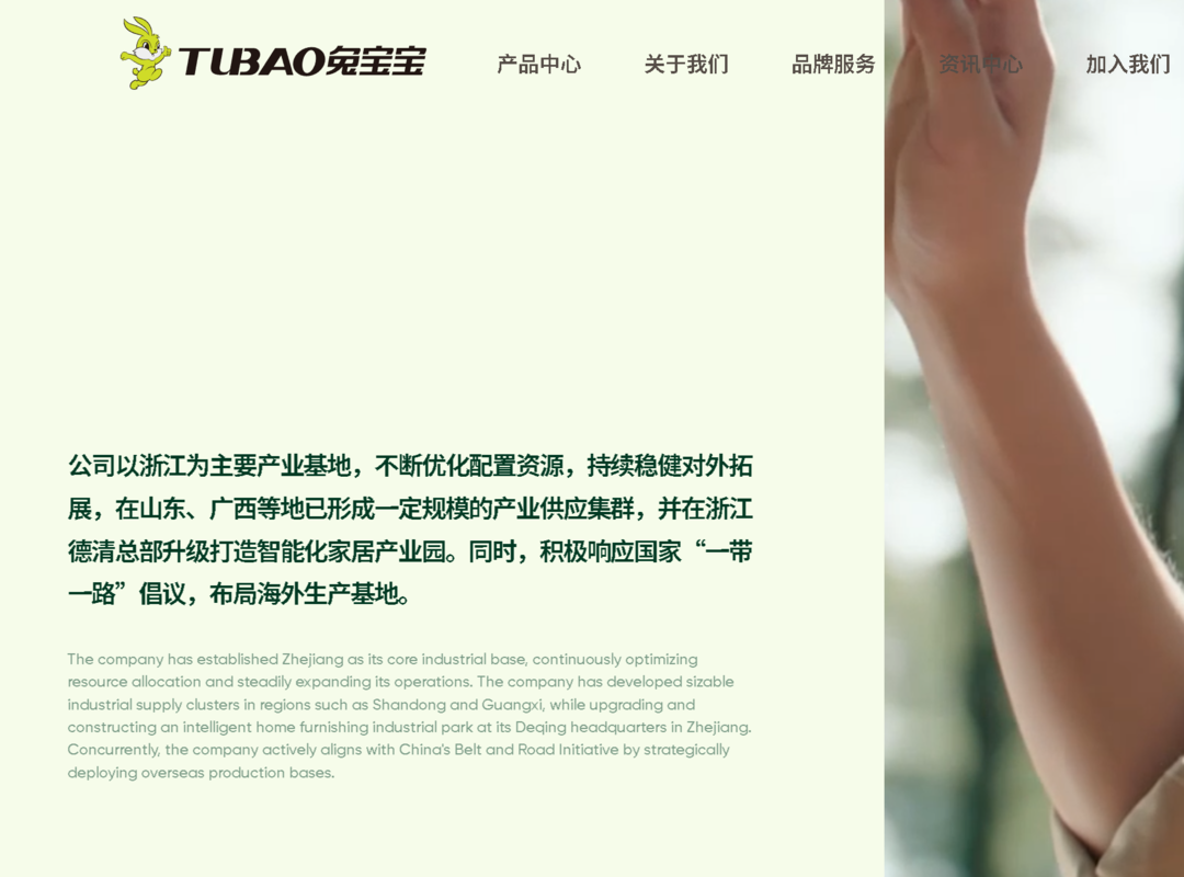 兔宝宝以浙江为主要产业基地,在山东、广西等地已形成一定规模的产业供应集群。