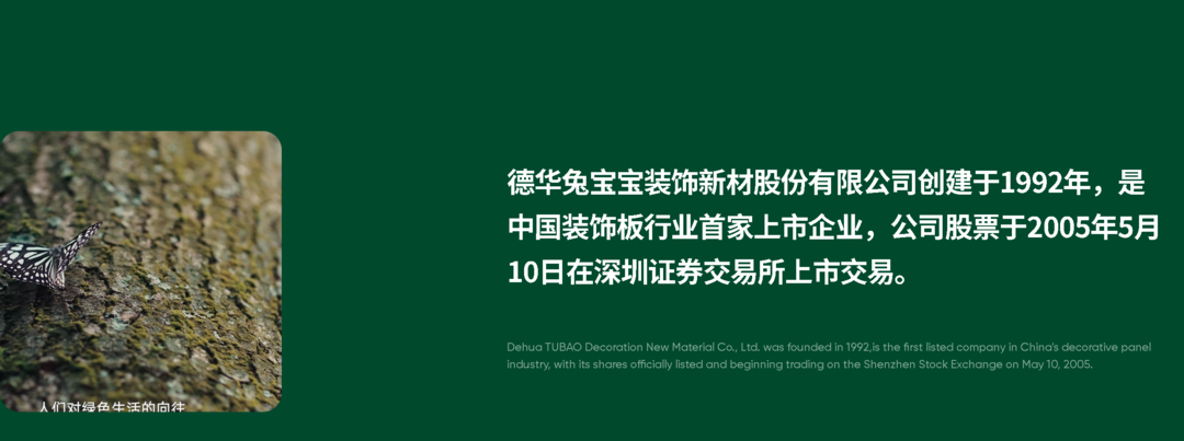 该公司官网介绍,兔宝宝创建于1992年,是中国装饰板行业首家上市企业,公司股票于2005年5月10日在深圳证券交易所上市交易。