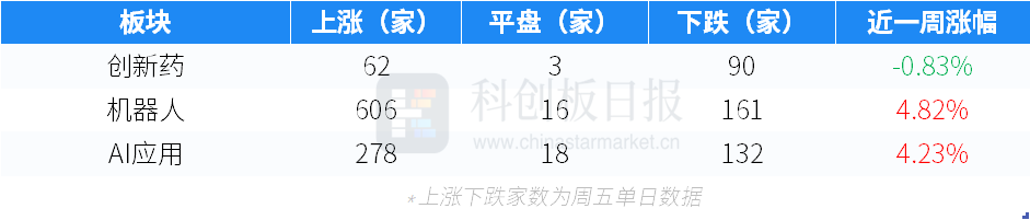 作为对比,本周创新药、机器人、AI应用二级市场表现如下表所示。