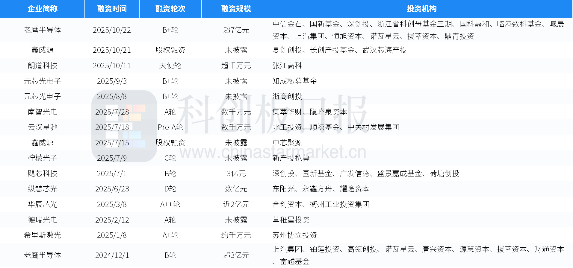 创投通数据显示,近一年来,国内半导体激光器领域部分获投案例如下。