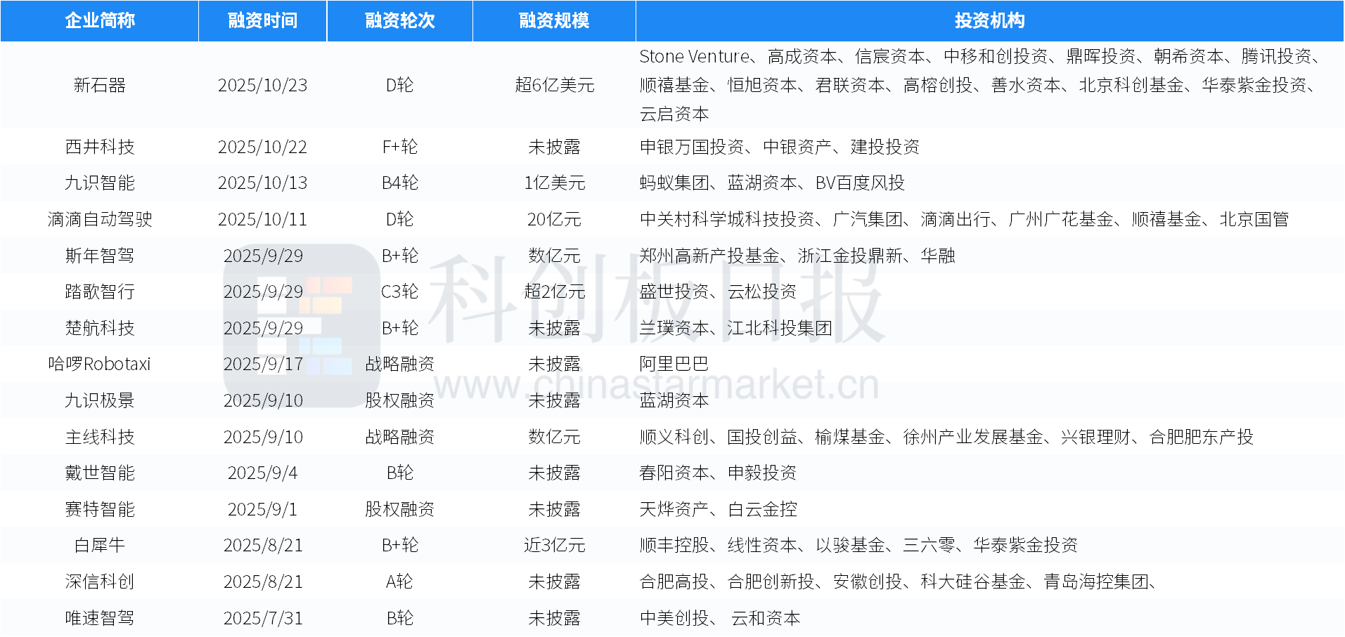 创投通数据显示,近一年来,国内自动驾驶领域部分获投案例如下。