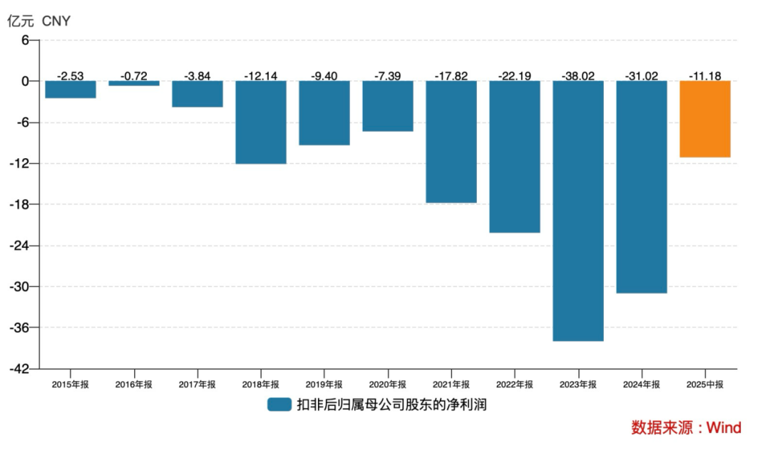 但其自2017年完全转型OLED业务以来,公司扣非后归母净利润连续八年为负,累计亏损约153亿元。