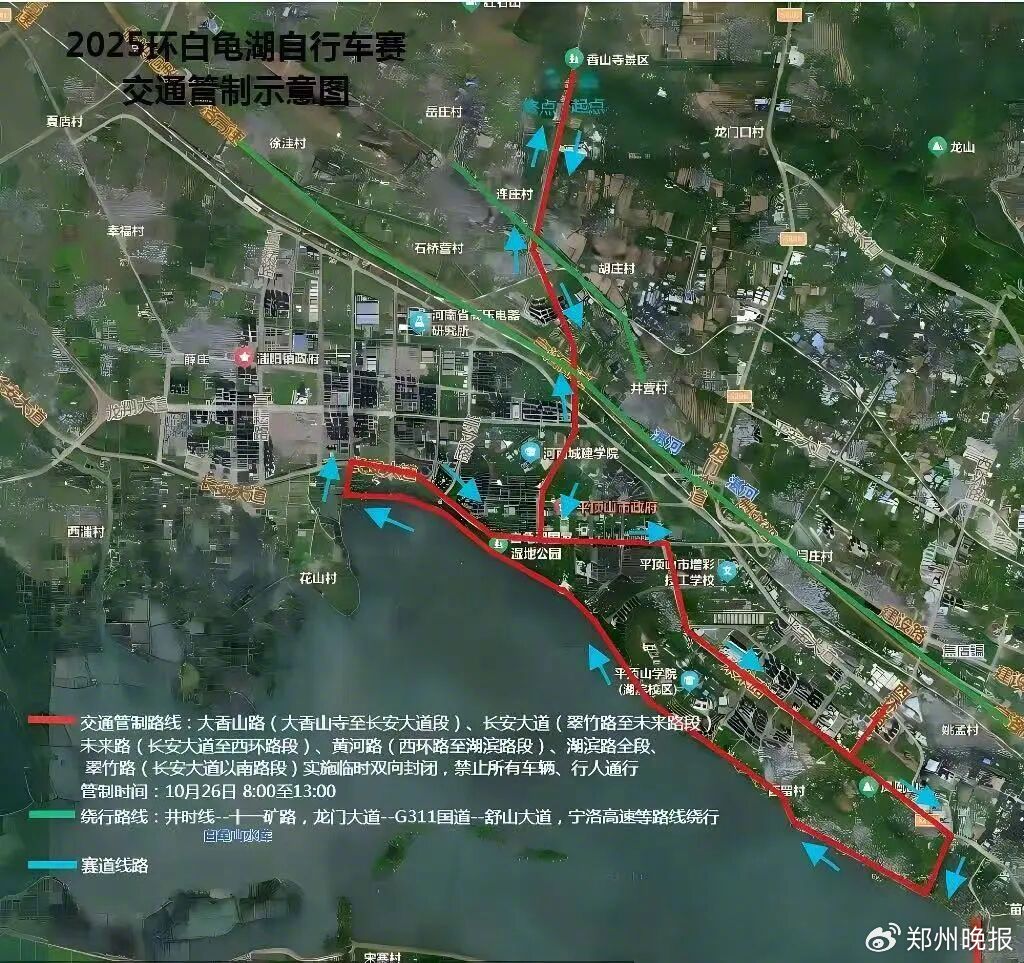 10月25日,平顶山市文广旅局发布消息,为保障“问鼎中原自行车骑游大会平顶山站暨2025首届环白龟湖自行车赛”,10月26日8:00~13:00,对大香山路等多路段及周边区域实施临时飞行管控。管控期间禁飞无人机、滑翔伞等“低慢小”航空器,违规者将被依法查处。同时,管控路段双向封闭,车辆行人可经井时线等路线绕行。