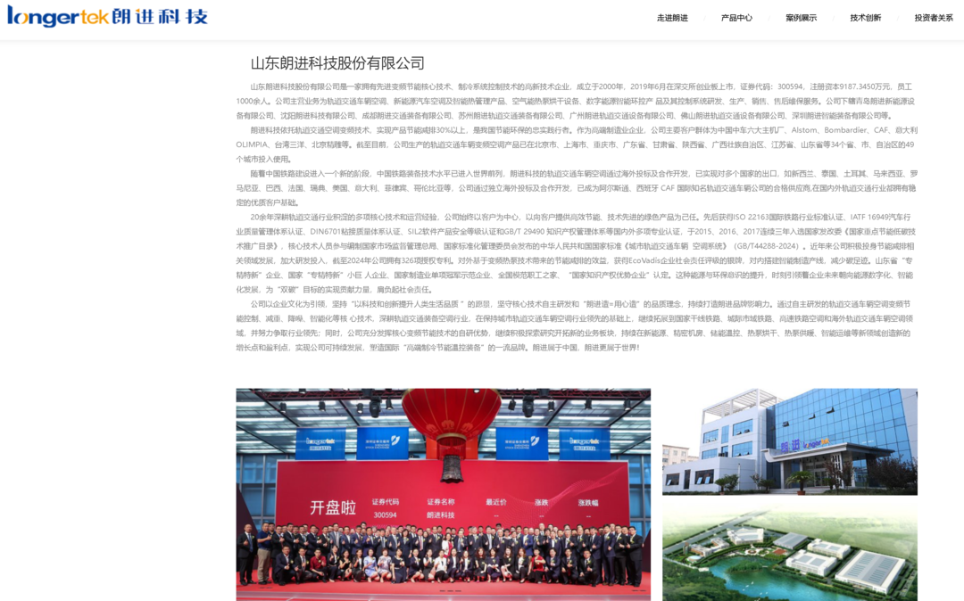 朗进科技官网显示,公司是一家拥有先进变频节能核心技术、制冷系统控制技术的高新技术企业,成立于2000年,2019年6月在深交所创业板上市,证券代码:300594,注册资本9187.3450万元,员工1000余人。