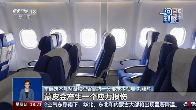 东航技术虹桥基地空客航线一分部技术经理 刘建辉:圆形的话它压力是分散的,设计上是安全的,最大程度上缓解蒙皮上的承载压力。另外一个圆形对旅客来说也是比较好的,有一个弧线视角,比较大,所以说后期的飞机全部改成圆形了。