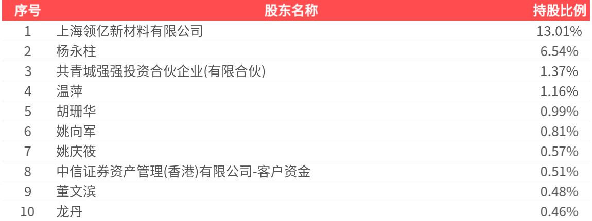 公司股东户数为2.39万户,前十大股东持股数量为6275.00万股,占总股本比例为25.89%,前十大股东持股情况如下: