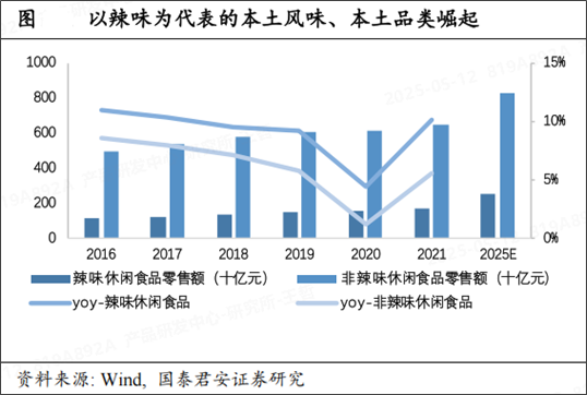 卫龙辣条业务高增长阶段在2021年之前,其中2019年增速超120%。