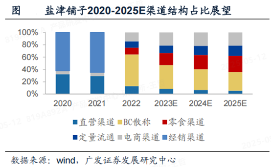 图片来源:京东商城盐津铺子旗舰店行业供需两端分散,单品上量需要时间,导致行业生产端企业对渠道的依赖性较大,想实现产品的广覆盖和深穿透需要借助渠道资源,导致零食销售渠道多元,无法仅依靠一两个渠道。盐津铺子是零食上市公司中渠道结构最均衡的。