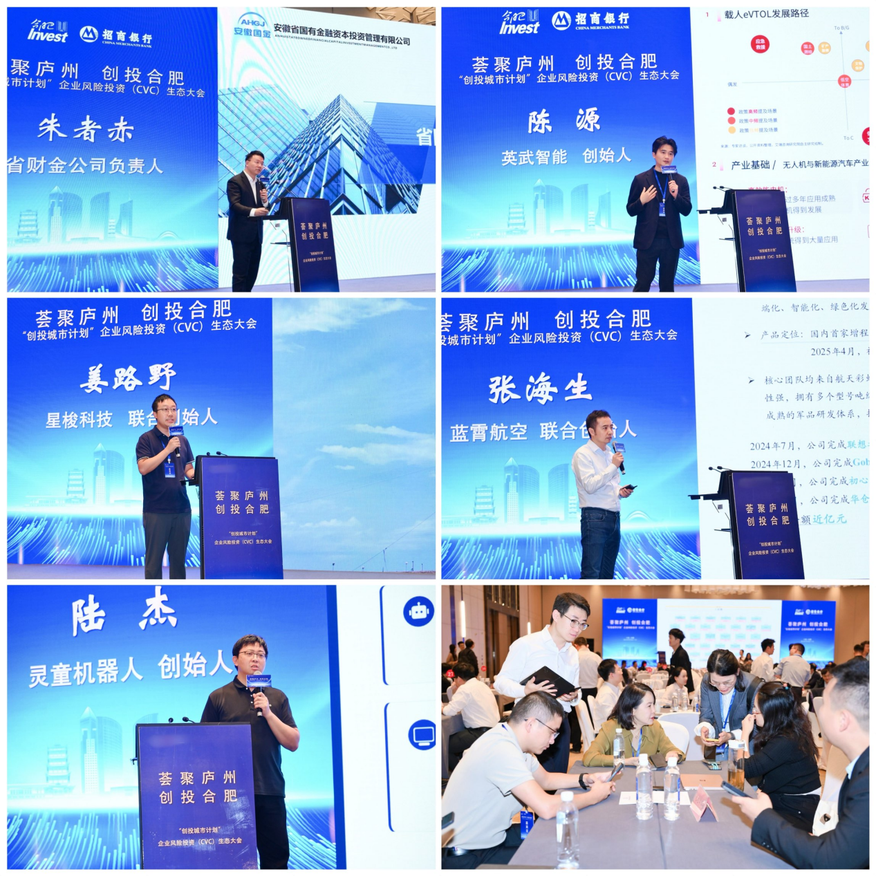 本次合肥“创投城市计划”CVC 生态大会,精准汇聚全国范围内的产业力量,吸引了80 家产业 CVC(如航天科工基金、中车转型升级基金、锦沙资本等)、头部基金管理人(如鼎晖投资、元禾重元、成为资本等)以及 50 家安徽省市区出资平台齐聚现场。为保障交流合作效率,大会特别设置 GP、LP对接会场,规划 40 张专属沟通席供各方深入洽谈,现场促成出资意向;项目路演会场则精选7家优质科创企业登台亮相,全面展示技术实力与发展潜力,真正为产业资本与创新项目搭建起高效对接、精准合作的优质平台。