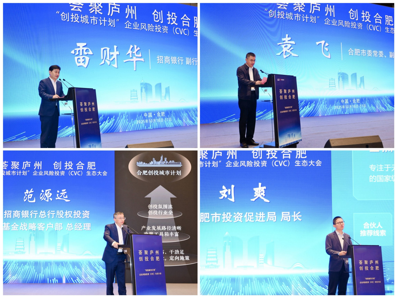 金秋庐州,丹桂飘香;科创赋能,共话未来。10月17日上午,招商银行作为合肥市“创投生态合伙人”,与合肥市投促局共同主办“荟聚庐州 创投合肥”产业CVC(企业风险投资)生态大会。招商银行副行长雷财华,合肥市委常委、副市长袁飞,招商银行股权投资基金战略部总经理范源远,招商银行合肥分行行长朱静、副行长赵瑜等出席活动,来自全国的龙头企业CVC、市场化投资机构、国资平台等300多位嘉宾齐聚,共商“产业资本×城市生态”融合新模式。
