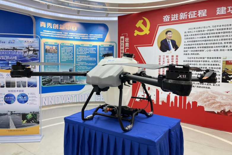 御智领创董事长谢小陵则聚焦产品落地能力。他特别强调,两款无人机均由桂林航天工业学院龙诗科博士团队研发,历经数百次户外测试,结合顺易洁纳米涂层后,光伏清洁效率得到大幅度提高,真正地提供“管用”的技术。