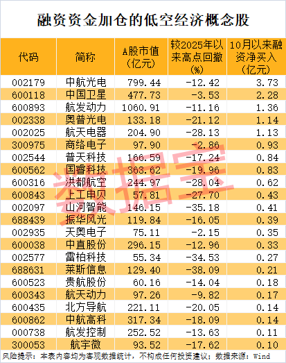 人民财讯10月27日电,证券时报·数据宝统计,截至10月24日收盘,10月以来融资资金净买入超千万元的低空经济概念股有22只。5股获融资净买入超1亿元,分别是中航光电、中国卫星、航发动力、奥普光电、航天电器。
