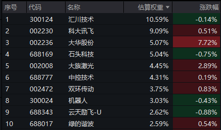 【机器人ETF基金(159213)标的指数前十大成分股】