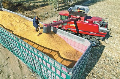 10月21日,在通辽市科尔沁区丰田镇哈拉满罕村博丰农机农牧业专业合作社的玉米地里,一台籽粒收割机正开足马力作业。机器驶过,玉米秆被迅速吞入,金黄的籽粒如流水般倾泻进仓储箱,实现了从田间直接脱粒到送收购企业,一步到位。