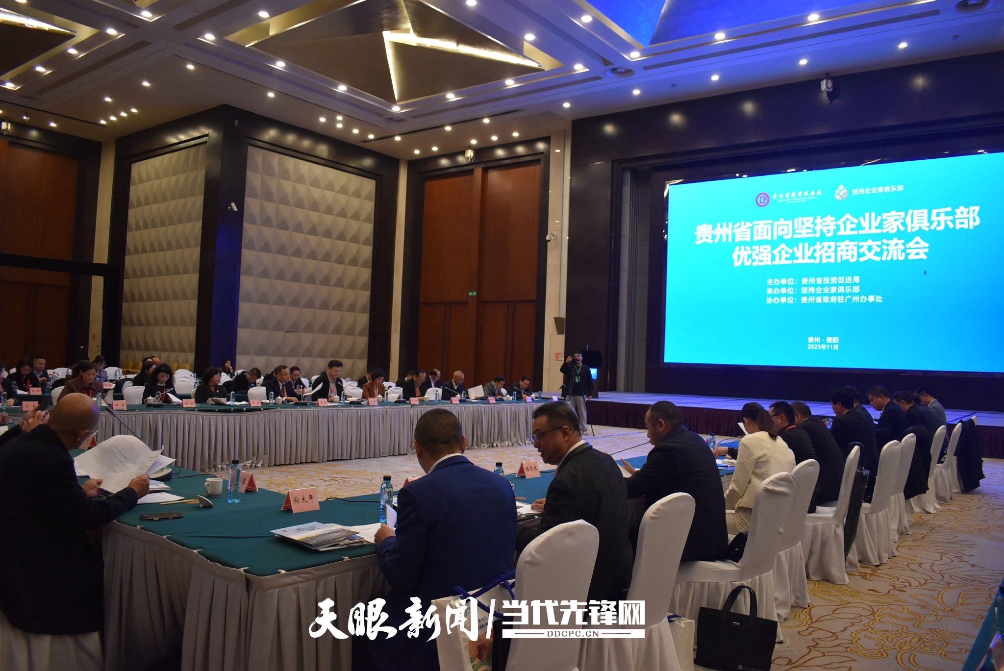 11月3日,2025贵商发展大会分论坛贵州省面向坚持企业家俱乐部优强企业招商交流会召开,来自国内外的500强企业代表、上市公司、专精特新及行业龙头的企业负责人齐聚一堂就贵州核心赛道与潜力领域共谋合作、共话发展。