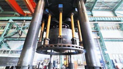 走进安徽心连心重型封头有限公司车间,一座四五层楼高的“钢铁巨人”——自主研发的20000吨三梁四柱双动智能封头压机巍然屹立,工人按下按钮,压头缓缓下降,将坯料一次压制成型。这是安徽省目前最大的模锻式油压机,填补了安徽省在特种设备行业中特种封头与压型件制造技术的空白。