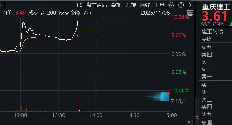 午后重庆本地股盘中异动拉升,重庆建工(600939)直线涨停,渝开发一度逼近涨停,重庆路桥、中设咨询、重庆港、渝三峡A等冲高。