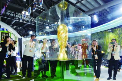 江苏展区的“金陵风雅”板块,金陵金箔向中外友人展示六朝古都的文化魅力和消费潮流。