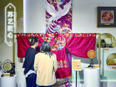 南京云锦研究所携《龙腾骏业》《百鸟朝凤吉服》《威凤祥麟》三件创新佳作亮相,通过传统工艺与现代科技融合,向世界展示中国非遗技艺的传承与突破。