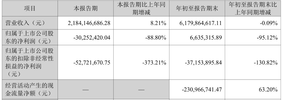 中国经济网北京11月7日讯鑫铂股份(003038.SZ)近日披露2025年第三季度报告。前三季度,公司实现营业收入61.8亿元,同比下降0.09%;归属于上市公司股东的净利润为663.53万元,同比下降95.12%;归属于上市公司股东的扣非净利润为-3715.39万元,上年同期为1.21亿元;经营活动产生的现金流量净额为-2.31亿元,上年同期为-6.28亿元。