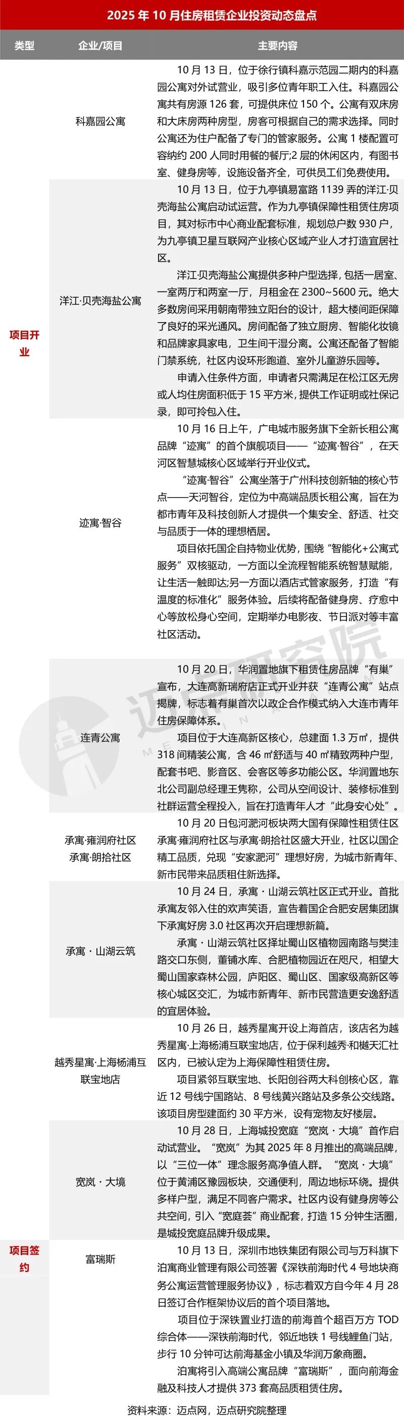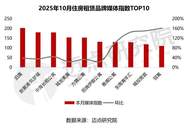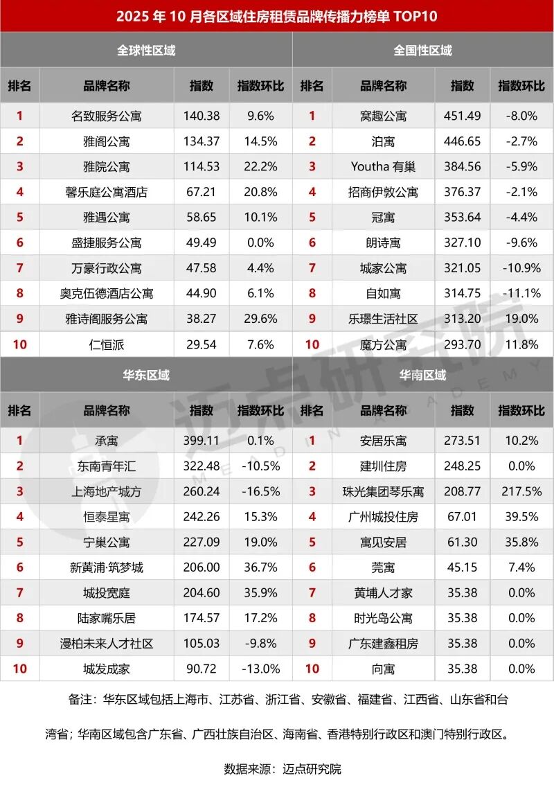 “2025年10月住房租赁品牌传播力榜单”数据来源于迈点品牌指数MBI,根据迈点品牌指数MBI 291家品牌数据汇总统计而成。具体说明: