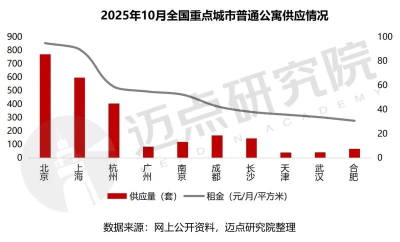 2025年10月,全国重点城市普通公寓量价齐跌。