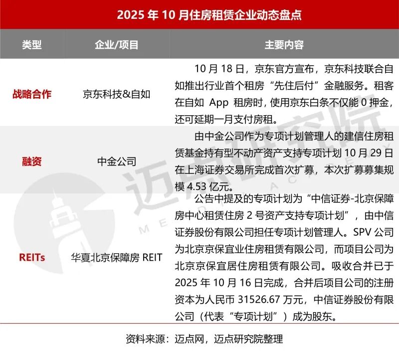 融资方面,由中金公司作为专项计划管理人的建信住房租赁基金持有型不动产资产支持专项计划10月29日在上海证券交易所完成首次扩募,本次扩募募集规模4.53亿元。