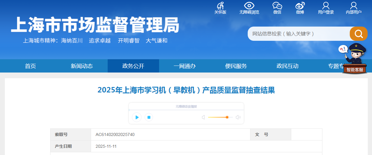 2025年上海市学习机(早教机)产品质量监督抽查所检项目符合相关标准的产品