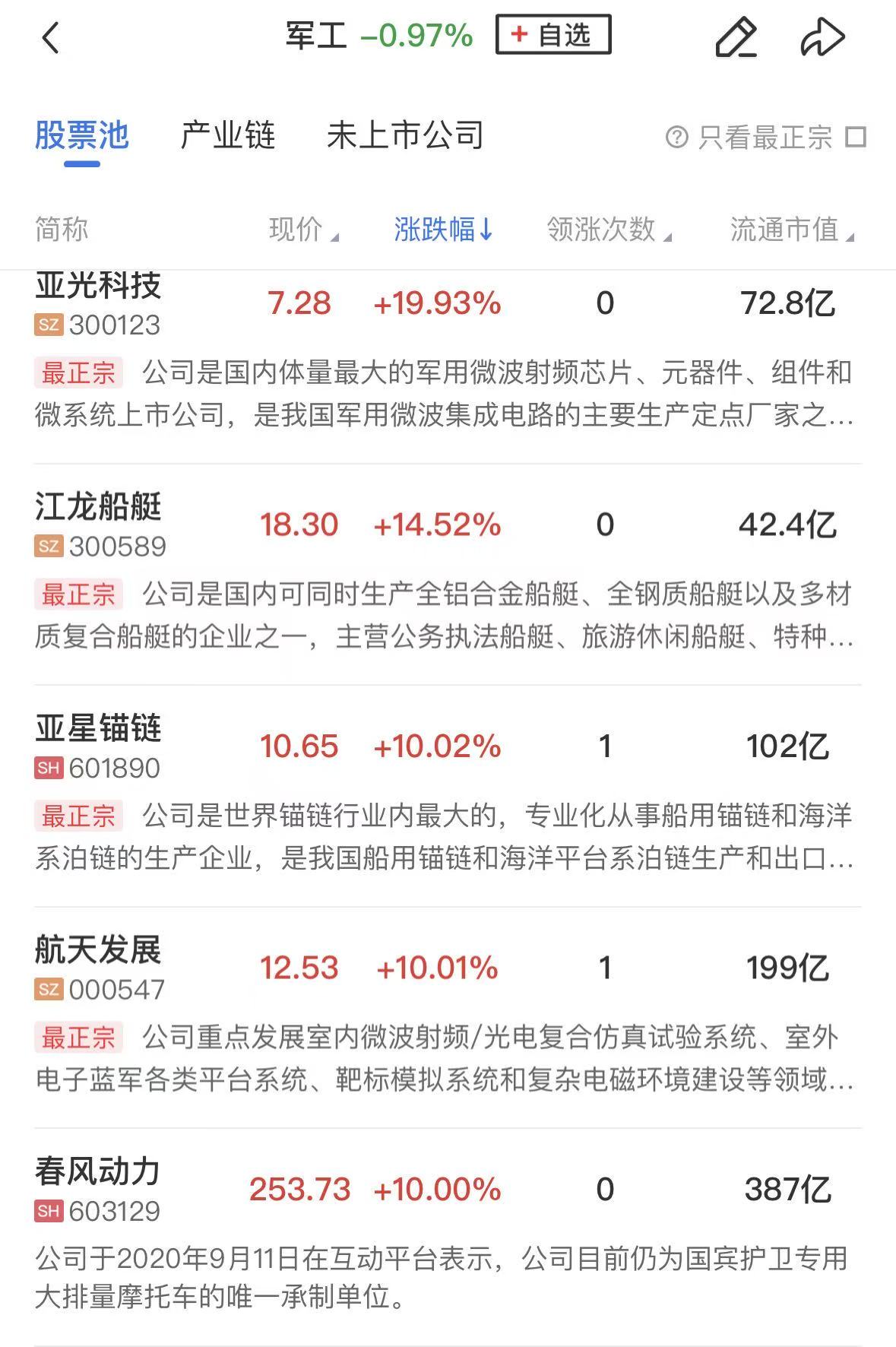 军工股再度活跃,亚星锚链涨停,江龙船艇、天海防务、国瑞科技、中船防务、国瑞科技等涨幅居前。