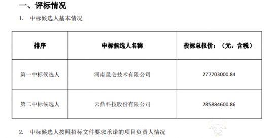 最终,昆仑技术独揽这个近2.8亿元的大单。