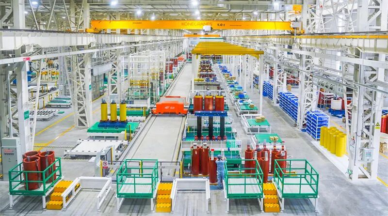 在金盘科技海口数字化工厂装配车间,无人运输车往来搬运物料,“中枢大脑”实时优化生产计划,一台台干式变压器通过多道工序后加快走下生产线。海口市融媒体中心记者 康登淋 摄