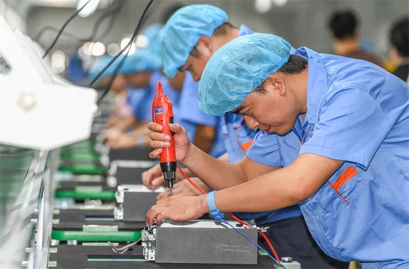 在智海科技智造基地生产现场,生产线技术人员采用标准化流水作业,有条不紊地进行整机生产的每一道工艺。海口市融媒体中心记者 康登淋 摄