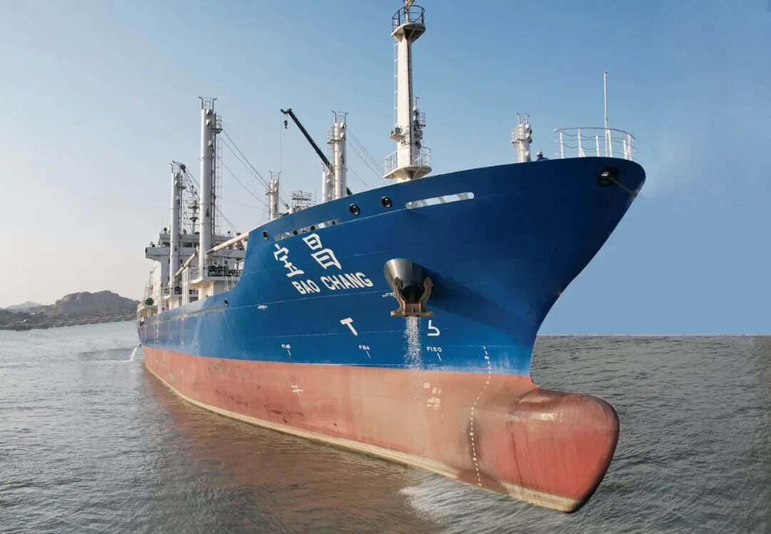被称为海上“大冰箱的“宝昌轮”,是当前国内技术领先的远洋冷藏运输载体。船舶总长114.95米、型宽17米、型深10.5米,载重吨达6400吨,载货量高达7100立方米,相当于一座可航行于大洋之上的巨型冷藏库。其核心制冷系统性能强劲,最低冷藏温度可达-35℃,能精准保持高档经济鱼类等货物的新鲜度,全程锁住食材品质。同时,该船具备大马力、抗风力强、节能环保的特点,由浙江欣海船舶设计研究院设计、荣程鑫邦船业建造,完全适配远洋长距离冷链运输需求。