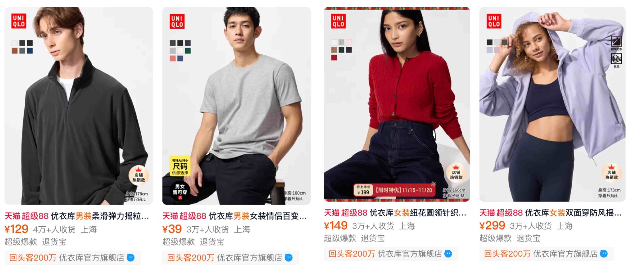 这也表明,高销量女装常常要兼顾功能性和时尚性,女装不仅有内搭外穿,也要有特定的款式、版型,才能吸引更多消费者。