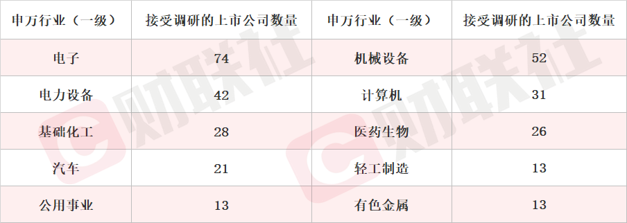 财联社11月23日讯(编辑 宣林)据Choice数据统计,截至周日,沪深两市本周共432家上市公司接受机构调研。按行业划分,电子、机械设备和电力设备接受机构调研频度最高。此外,计算机、公用事业等行业关注度有所提升。