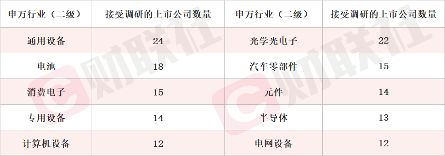 细分领域看,通用设备、光学光电子和电池板块位列机构关注度前三名。此外,计算机设备、电网设备等行业机构关注度有所提升。