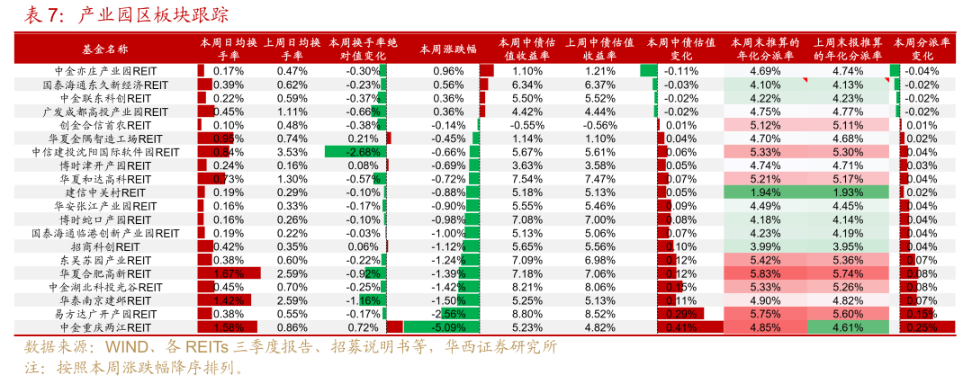 园区板块:表现分化明显,建议优先关注出租率靠前、租金单价合理的园区个券。重庆两江受即将解禁31%份额的影响,近两周合计跌幅10%。两江新区升级为行政区,已设置收益分配调节机制,目前分派率约4.85%,可关注超跌机会。