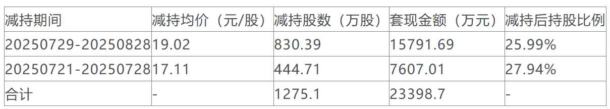 新浪财经的数据显示,佛山澜海瑞兴投资最初持股1.23亿股,占总股本的28.99%。佛山澜海瑞兴投资从2025年7月21日起,第一次减持天银机电股份,迄今为止,累计减持公司股票1275.1万股,累计套现约2.34亿元。