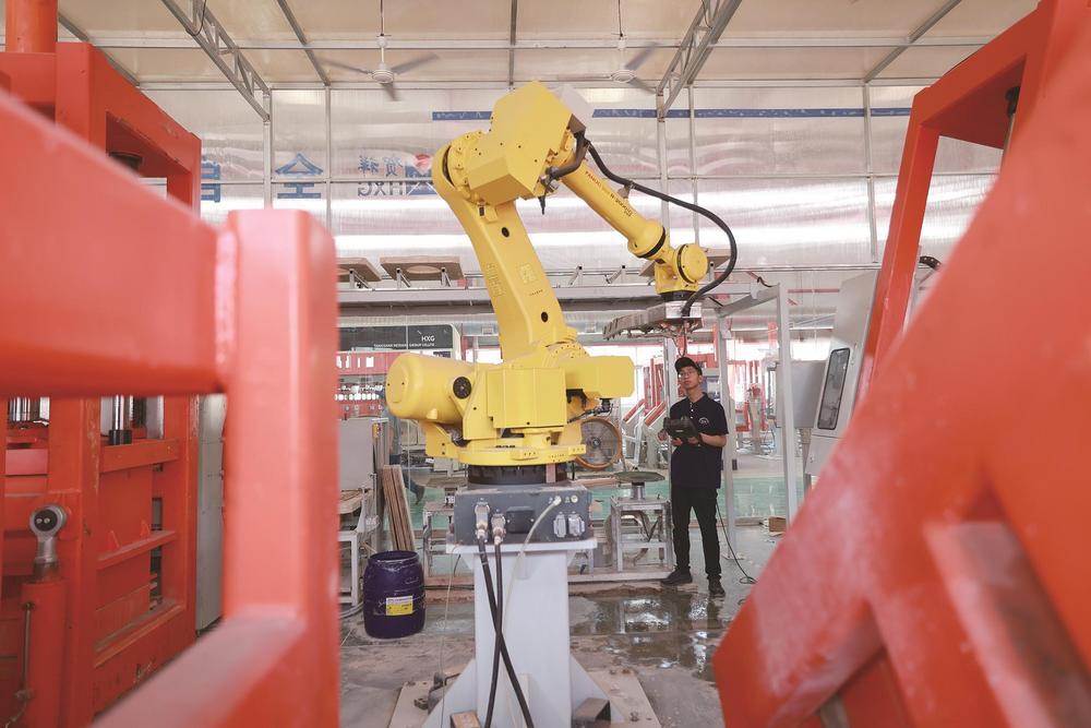 图为唐山贺祥智能科技股份有限公司的工人在调试机械手。 李秀清 摄