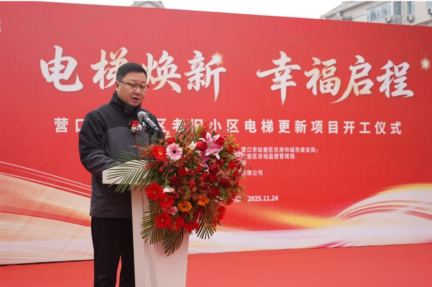 2025年11月24日,辽宁省营口市站前区永江城市花园,“康力电梯-营口市站前区老旧小区电梯更新项目”荣耀开工。