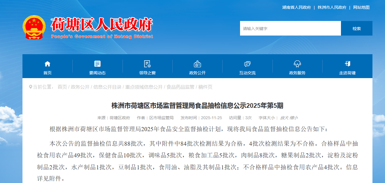 根据株洲市荷塘区市场监督管理局2025年食品安全监督抽检计划,现将我局食品监督抽检信息公告如下: